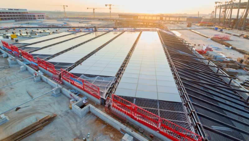 中建五局科学部署、同步推进多个工区建设,综合交通枢纽项目金属幕墙施工达16810平方米,玻璃幕墙施工达14400平方米,综合交通中心机电设备安装稳步推进,T3航站楼多个屋面分区进行钢结构安装施工,市政工程项目正全力冲刺雨水调节池设备安装、供水加压站工程土方回填、综合管廊内输配水工作“1030”目标节点。(赵悦)