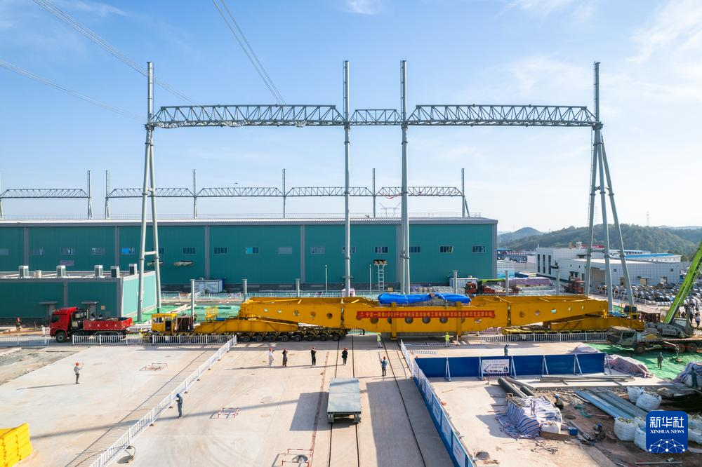 当日,一台车货总重达529吨的换流变压器送入“宁电入湘”工程衡阳换流站,标志着首台换流变压器运输任务圆满完成,“宁电入湘”工程湖南段全面进入电气安装高峰期。