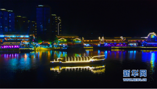 穿紫河水路旅游客运精品航线位于湖南省常德市。夜幕降临,该航线沿岸灯火璀璨,游客乘船不仅可以欣赏沿河的美丽夜景,还可以观看常德丝弦、花鼓戏、船工号子等表演。穿紫河水路旅游客运精品航线与周边的柳叶湖、桃花源等旅游景点形成联动,带动了当地酒店、餐饮、购物等业态的发展。(苏峥嵘)
