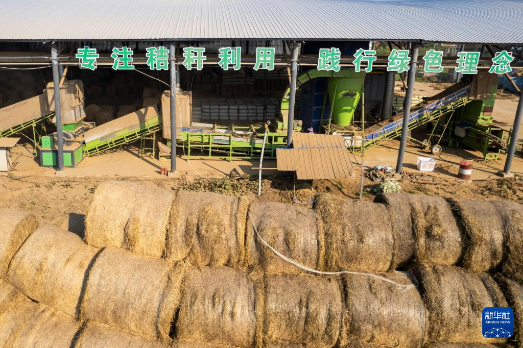 这是12月1日在南县浪拔湖镇太阳山村拍摄的一个秸秆饲料化利用工厂(无人机照片)。新华社记者 陈思汗 摄pagebreak