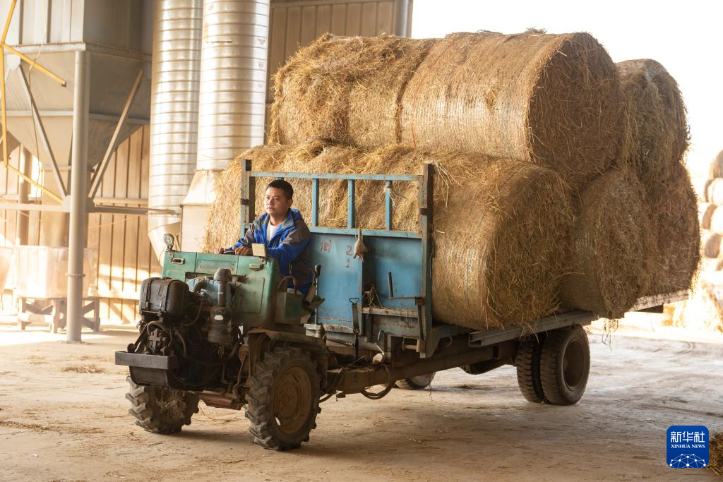 12月1日,在南县浪拔湖镇太阳山村一秸秆饲料化利用工厂,工人在运输秸秆。新华社记者 陈思汗 摄pagebreak