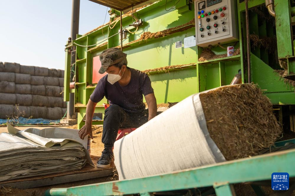 12月1日,在南县浪拔湖镇太阳山村一秸秆饲料化利用工厂,工人将秸秆制作成饲料。新华社记者 陈思汗 摄pagebreak
