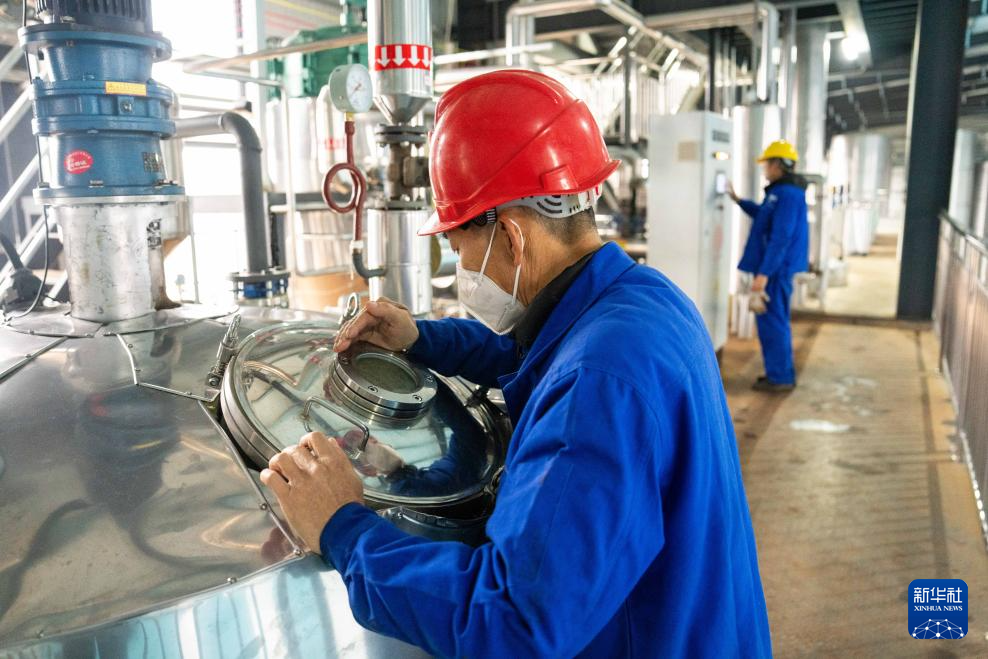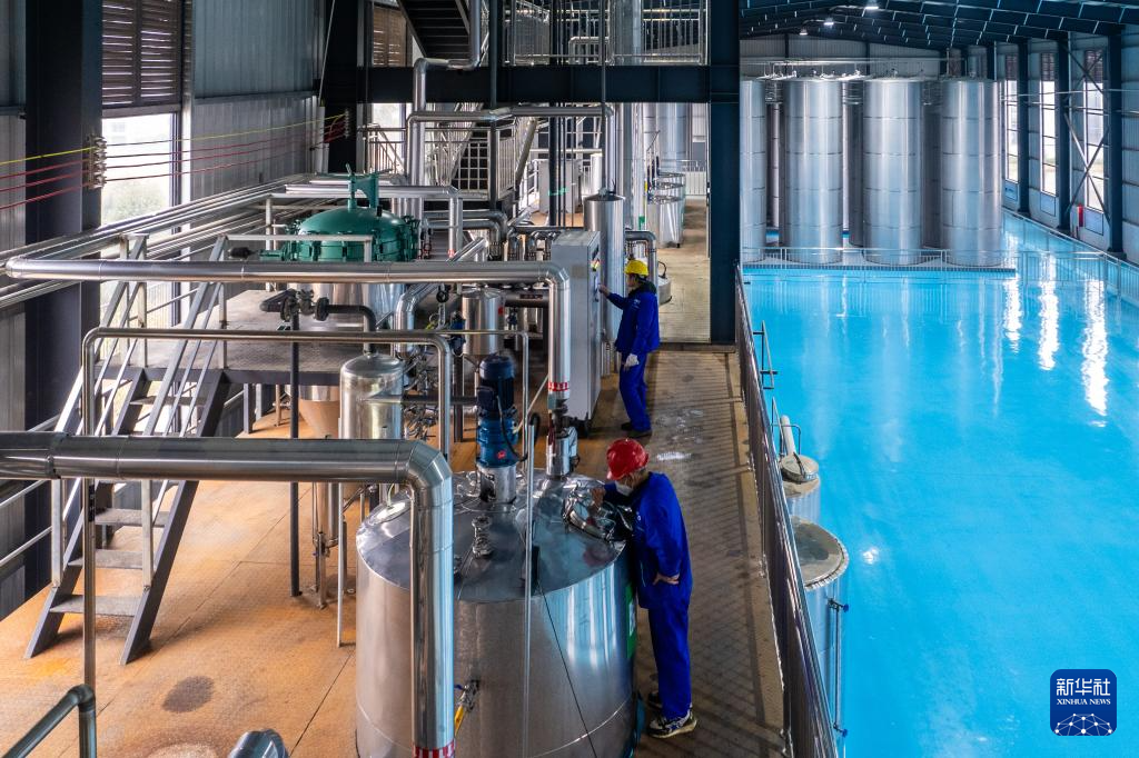 12月7日,工人在位于祁阳市观音滩镇的湖南金波茶油有限公司查看茶油生产情况。新华社记者 陈思汗 摄pagebreak