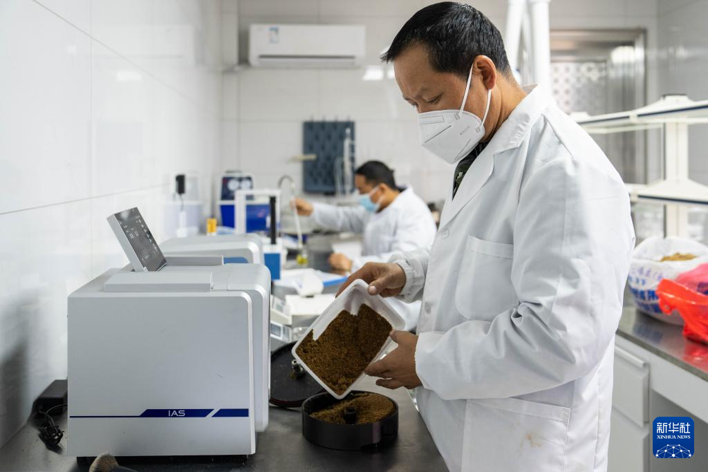 12月7日,工人在位于祁阳市观音滩镇的湖南金波茶油有限公司检测茶油品质。新华社记者 陈思汗 摄