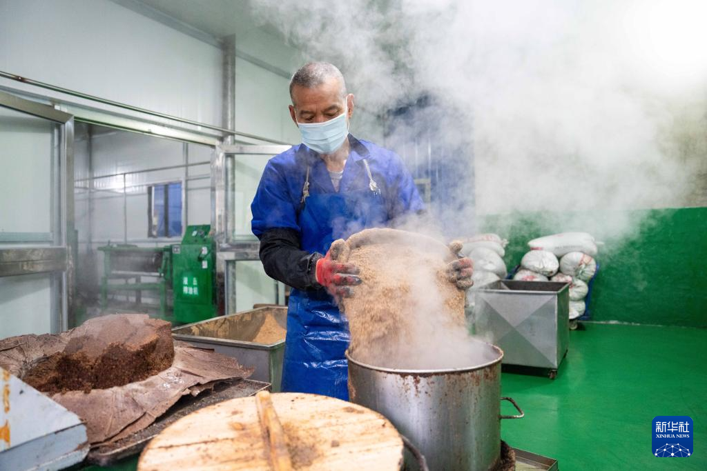 12月7日,工人在位于祁阳市八宝镇的湖南顾君茶油有限公司蒸茶粉。新华社记者 陈思汗 摄pagebreak