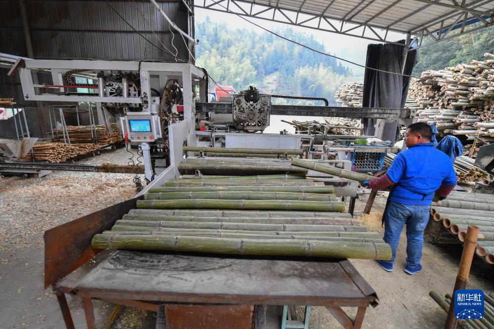 12月10日,村民在湖南省郴州市桂东县清泉镇桥头乡侠头村一家楠竹初加工企业进行楠竹开片。新华社记者 陈泽国 摄pagebreak
