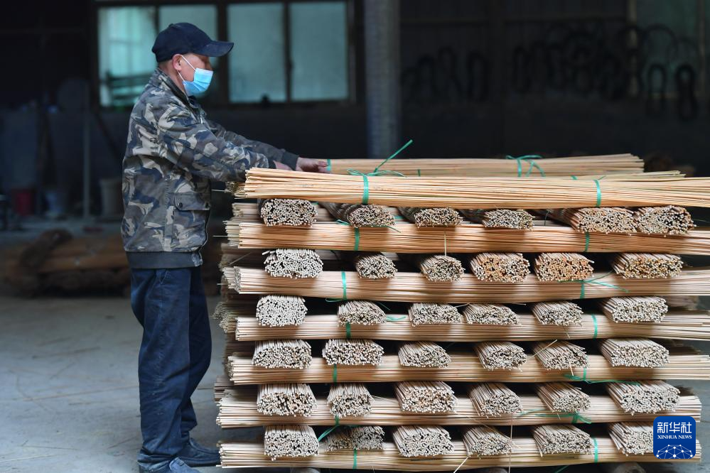 12月10日,村民在湖南省郴州市桂东县清泉镇桥头乡侠头村一家楠竹初加工企业整理拉丝后的楠竹。新华社记者 陈泽国 摄pagebreak