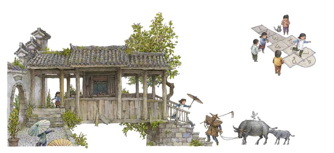 《中国民居建筑绘本·外婆在江南》从历史、地理、民俗民风等角度来讲述江南民居建筑之美,用绘本形式勾勒出一幅江南水乡人们的生活图景。