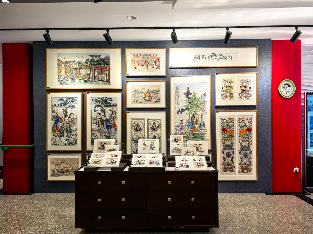 画店经理杨凯说,寓意吉祥的杨柳青木版年画有传统、有内涵,在逢年过节时历来被老百姓青睐。随着非遗文创的兴起,越来越多年轻人对融合年画元素的创意产品产生兴趣,“传统文化融入了大众生活”。