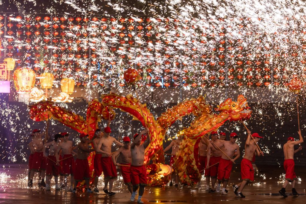 在重庆市铜梁区奇彩梦园景区,绚丽的龙灯和非遗表演吸引众多游客前来观赏。在孙悟空形象的灯组前拍照的游客杨进说,去年《黑神话:悟空》游戏和今年春节《哪吒之魔童闹海》电影爆火,这些展现传统神话故事的花灯也成了最热门的打卡点。