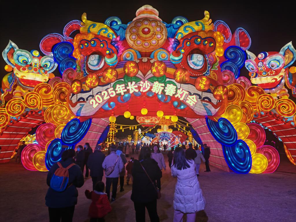 同时,科技助力让“赏花灯”更加炫酷。位于湖南湘江新区的华谊兄弟(长沙)电影小镇,40多组大型主题灯组形成的“花灯大世界”里,不仅展示了长沙铜官窑、锦鲤、芙蓉花等国风元素,还打造了一条沉浸式光影通道。