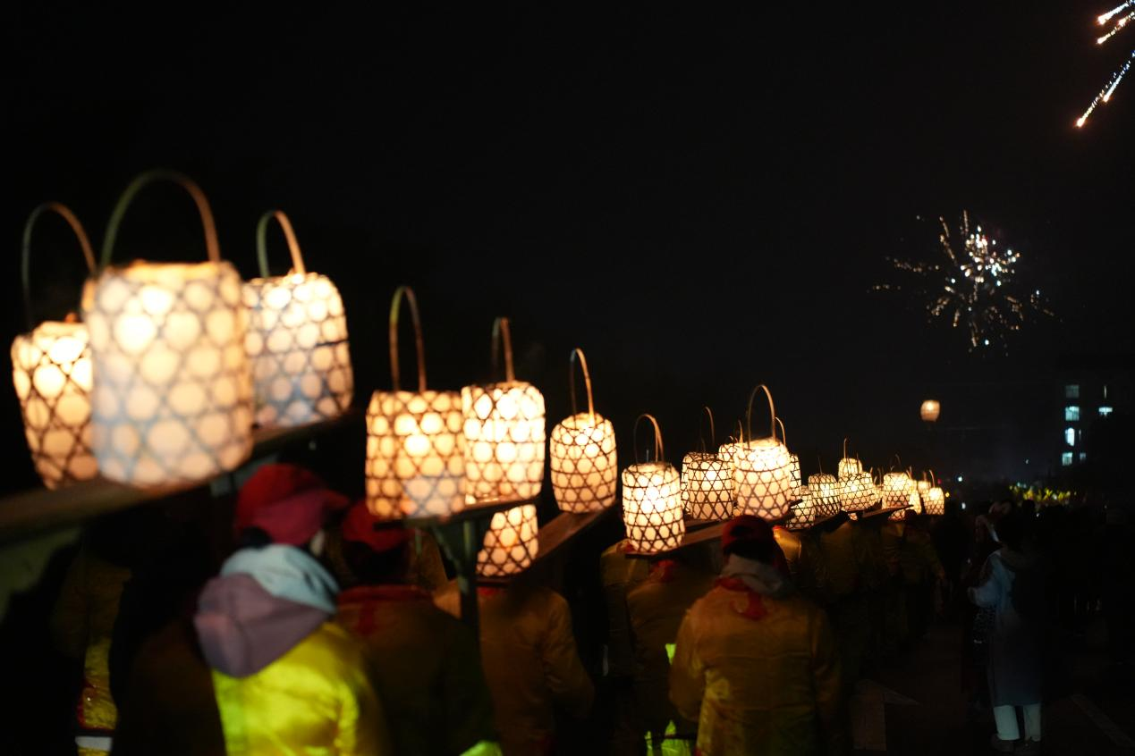 在升腾的孔明灯下,一支非遗巡游队造型各异,敲锣打鼓穿街而过,吸引大批市民和游客围观。非遗巡游队分为百敬龙方阵、汉服方阵、探灯方阵3个方阵,从龙王庙出发,经市民广场,到春联社区“门前三小”结束,全程6公里左右。