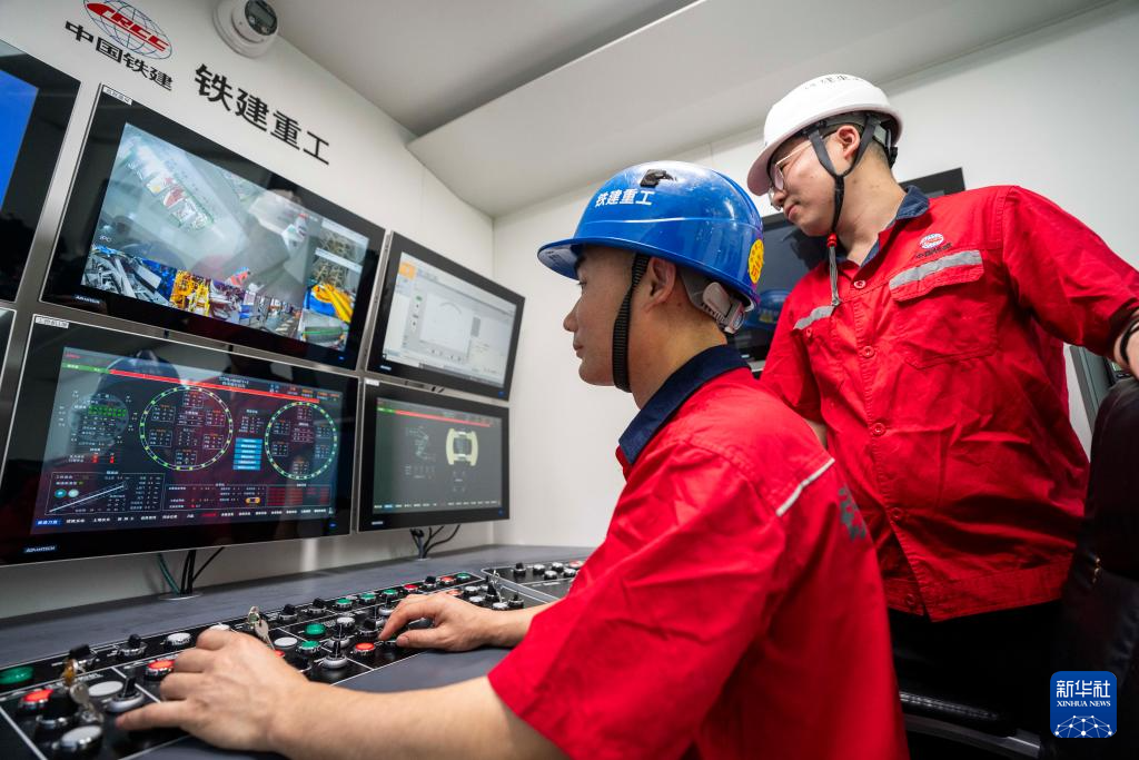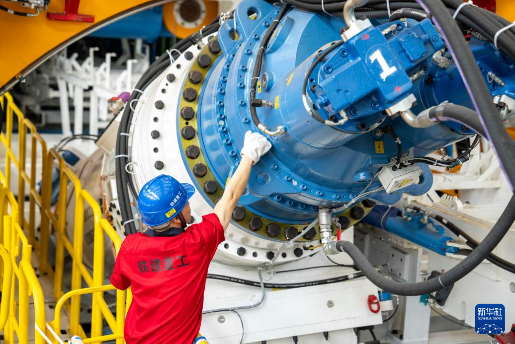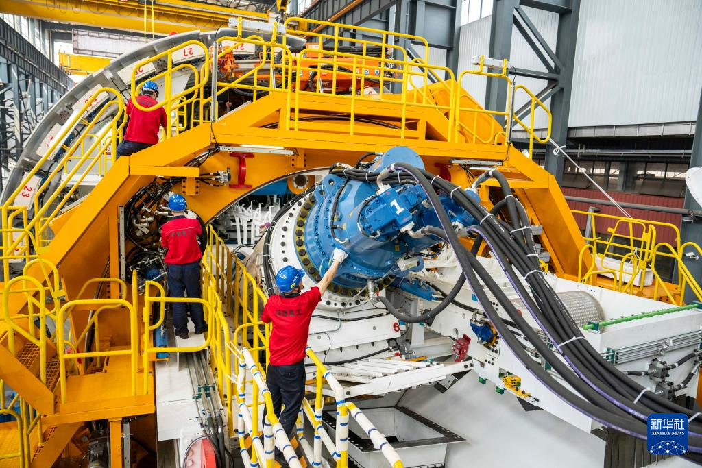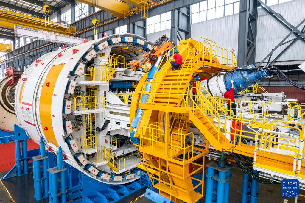 3月26日,工人在铁建重工长沙第二产业园调试“强基号”掘进机。新华社记者陈思汗摄