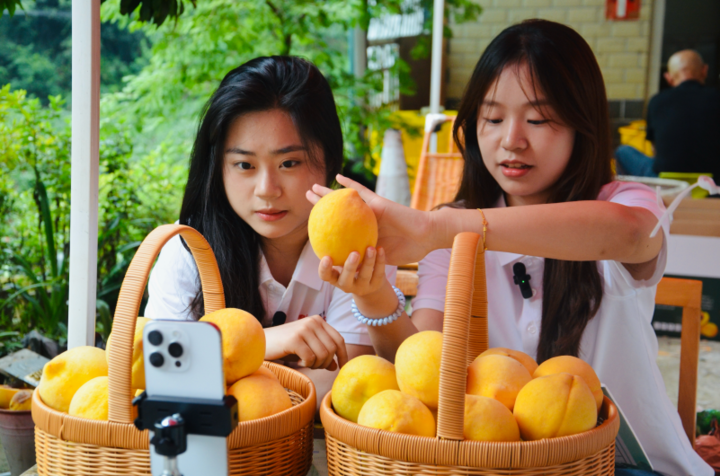 师生们抵达鑫山村后立刻走进黄桃果园,实地观摩并与村民交流当地利用沙质土壤优化种植的经验。在销售环节调研中,学子化身“助农主播”在抖音直播带货,展示黄桃品质与种植环境,当日销售额突破1.8万元,排名最高攀升至平台生鲜榜第9名,吸引多家电商机构主动合作。
