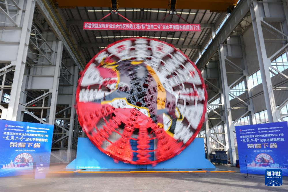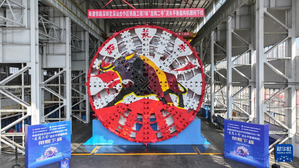 10月24日,由中铁十四局和铁建重工集团联合打造的“龙岗二号”盾构机在湖南长沙下线。这台盾构机整机长约117米,总重量约3600吨,开挖直径14.31米,将应用于深汕高铁龙岗隧道建设。pagebreak