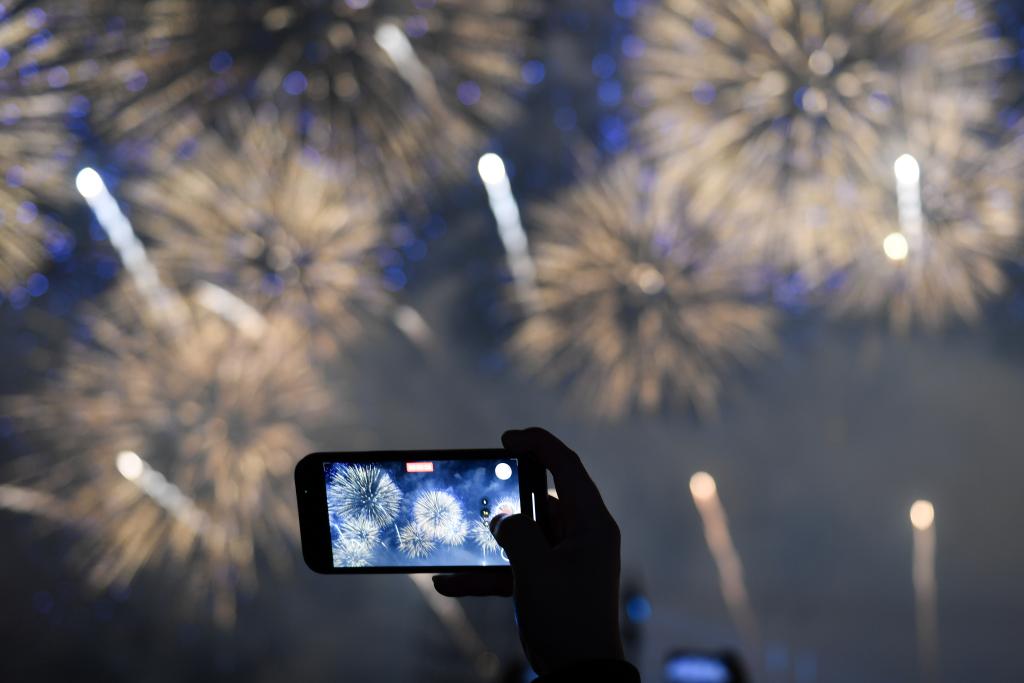 10月24日,观众在拍摄烟花表演。新华社记者 陈振海 摄pagebreak