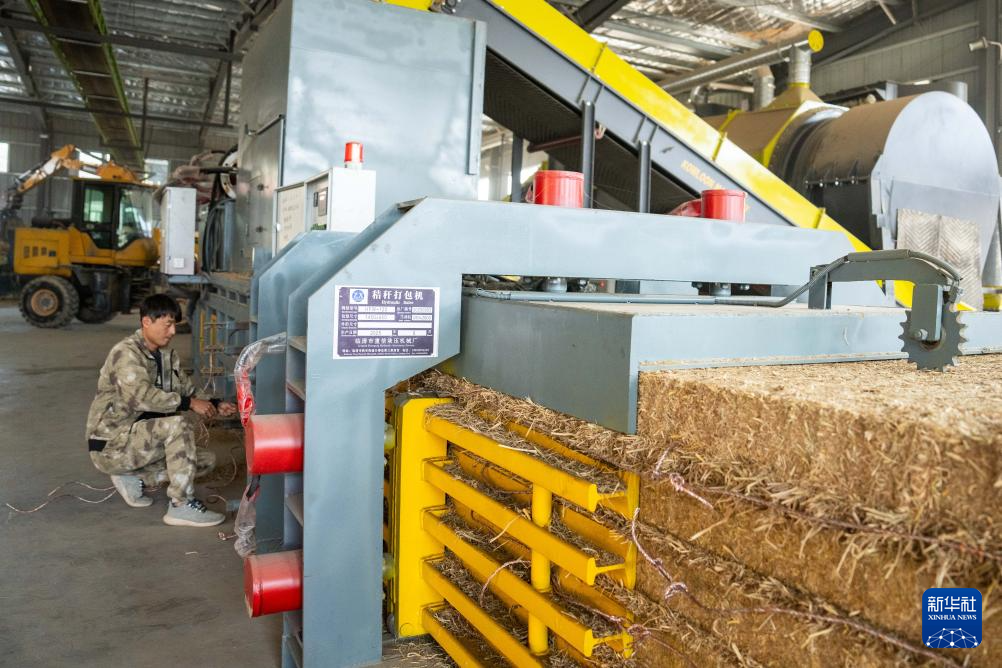 11月5日,在位于长沙县开慧镇的长沙萱凡农业发展有限公司秸秆饲料化加工车间,工人操作秸秆打包机。新华社记者 陈思汗 摄pagebreak