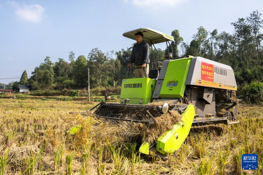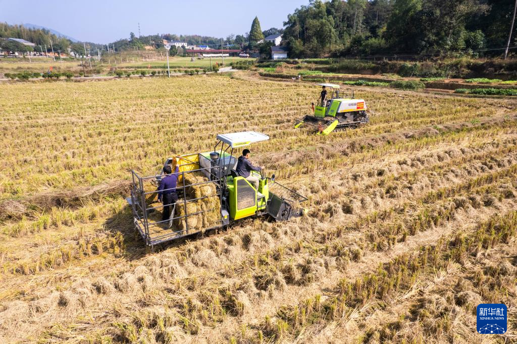 11月5日,在长沙县开慧镇开慧村,村民操作自走式秸秆打捆机回收水稻秸秆。新华社记者 陈思汗 摄pagebreak