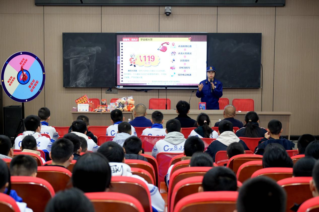 11月20日,郴州市消防救援支队联合郴州市教育局走进市第九中学,开展“消防安全知识进校园”主题活动,通过“理论+实操”相结合的方式,为师生带来一堂生动实用的消防安全教育课。