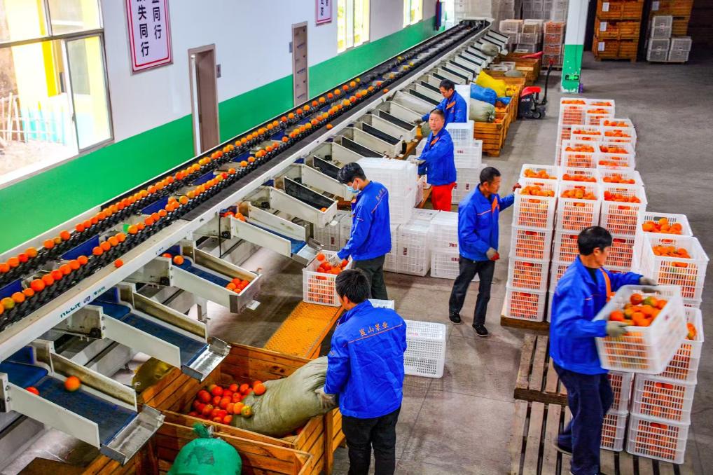 在湖南山之良科技有限公司的生产车间,果香更加浓郁。新鲜脐橙经清洗、压榨、过滤等工序,变成清澈甘甜的鲜榨果汁;橙皮则被加工成果干,由工人包装好装箱。“以前脐橙卖不完容易烂,现在一颗橙子通过深加工,附加值翻了好几倍。”公司生产总监戴顺友介绍,今年脐橙深加工量已达7000多吨,带动周边百余名村民在家门口就业。