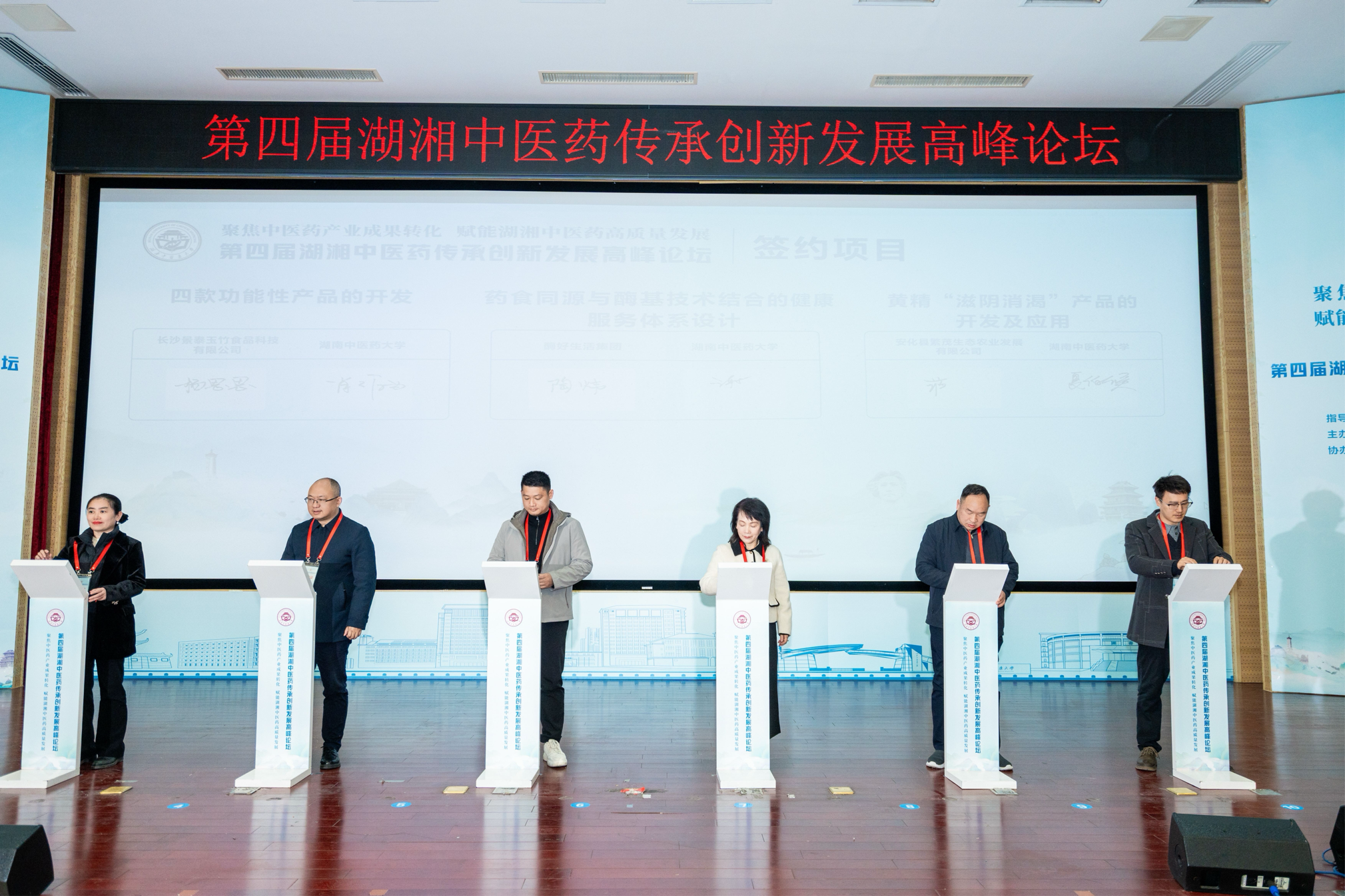 论坛期间举行了6个中医药产学研合作项目的签约仪式,项目涵盖新药研发、经典名方开发、大健康产品创制及诊疗技术推广等领域,标志着校企、校地合作进入更深层次。现场,与会专家作题为《湖南省药食同源产业发展现状与展望》的主旨报告。
