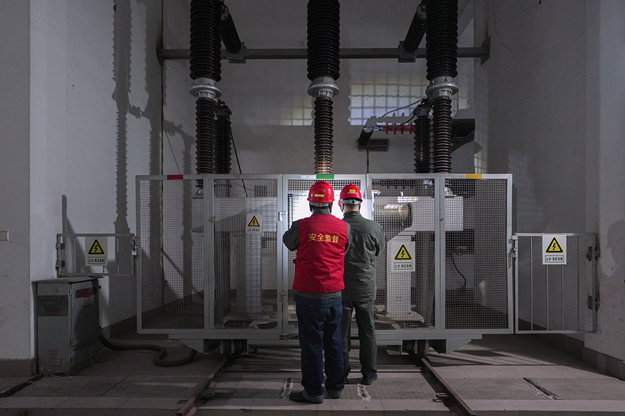 2025年12月31日晚上7:30,国网长沙供电公司(电雷锋)东方红共产党员服务队110千伏桃花变进行节前专业化巡视。新华网发 刘熠杨摄