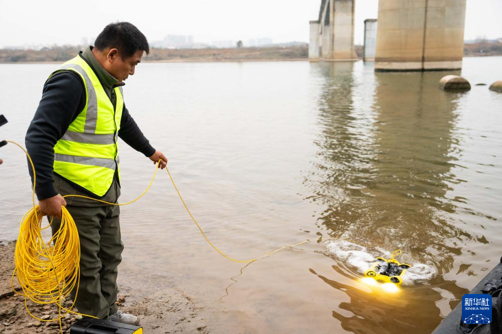 这是1月29日在沪昆高铁湘江特大桥下拍摄的一台水下机器人。新华社记者 陈思汗 摄pagebreak