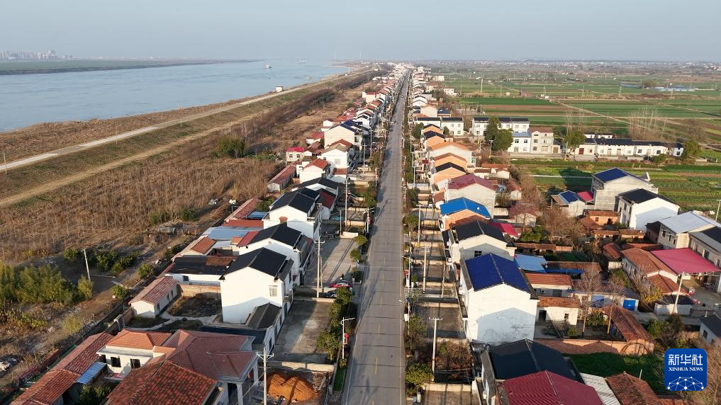 这是位于长江沿岸的湖南省临湘市江南镇长江村(无人机照片)。新华社记者丁春雨 摄