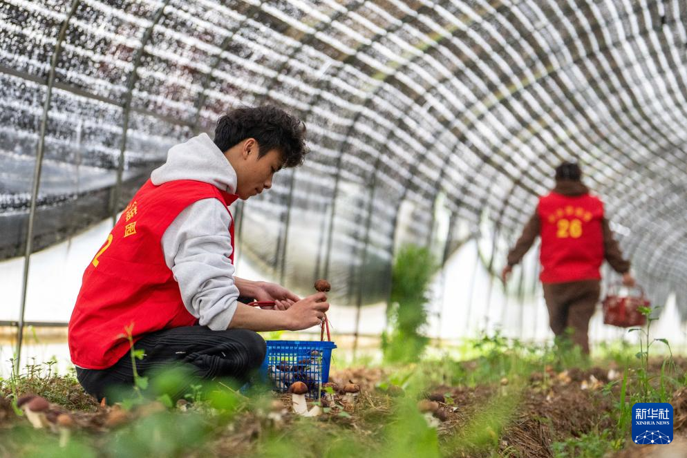 3月17日,在湖南省长沙市望城区靖港镇采丰蘑菇种植园,村民在采摘姬松茸。新华社记者 陈思汗 摄pagebreak