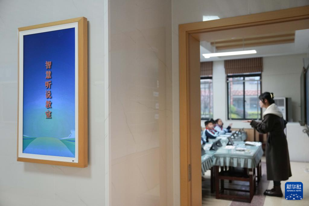 3月17日,老师在湖南湘江新区雷锋小学的智慧听说教室上英语课。新华社记者 薛宇舸 摄pagebreak