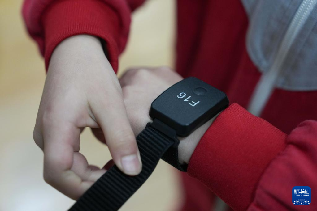 3月17日,学生在湖南湘江新区雷锋小学体育课上佩戴心率监测手环。新华社记者 薛宇舸 摄pagebreak