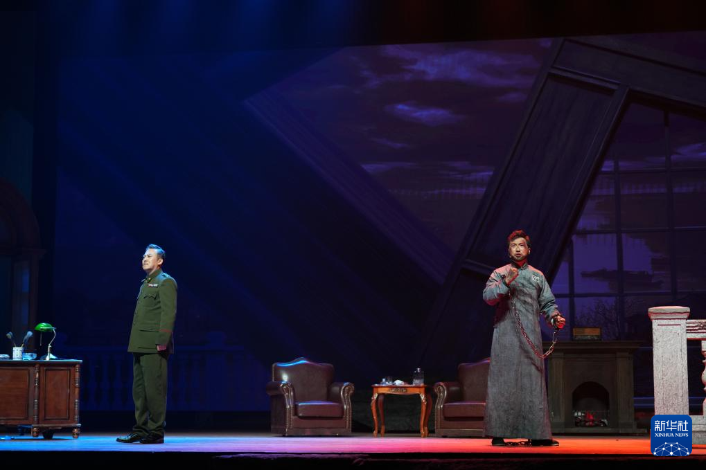 3月27日,演员在中南大学天心校区礼堂演出2025版话剧《红岩》。