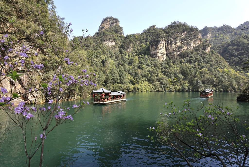 张家界还推出“赏花+低空飞行”等更多沉浸式体验吸引游客。入春以来,黄龙洞景区油菜花海连片绽放,直升机低空游览项目人气火爆。停机坪旁,来自成都的游客李女士带着孩子刚结束飞行体验,“空中俯瞰峰林和花海,视野开阔、体验震撼,错峰出游十分惬意。”她说。