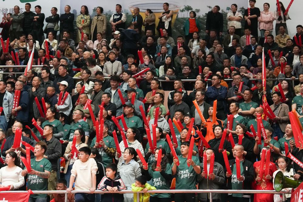 2026年4月13日,在“湘BA”张家界队对阵湘潭队的比赛中,观众为张家界队加油助威。